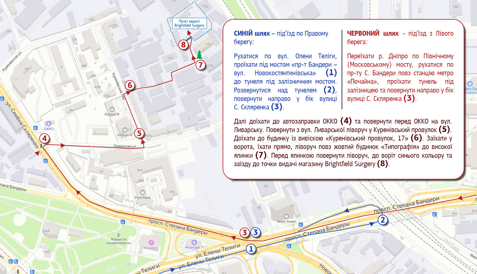 1. Самовивіз із точки видачі Магазину (безкоштовно). Адреса: Куренівський пров., 17, м. Київ. За посиланням знаходиться мапа проїзду до точки видачі.